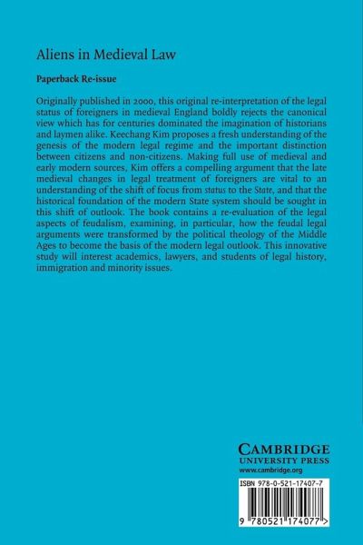 This reinterpretation of the legal status of foreigners in medieval England boldly rejects the canonical view which has for centuries dominated the imagination of historians and laymen alike. Keechang Kim proposes an understanding of the genesis of the modern legal regime and the important distinction between citizens and non-citizens. Making full use of medieval and early modern sources, Kim offers a compelling argument that the late medieval changes in legal treatment of foreigners are vital to an understanding of the shift of focus from status to the State, and that the historical foundation of the modern state system should be sought in this shift of outlook. The book contains a re-evaluation of the legal aspects of feudalism, examining, in particular, how the feudal legal arguments were transformed by the political theology of the Middle Ages to become the basis of the modern legal outlook.