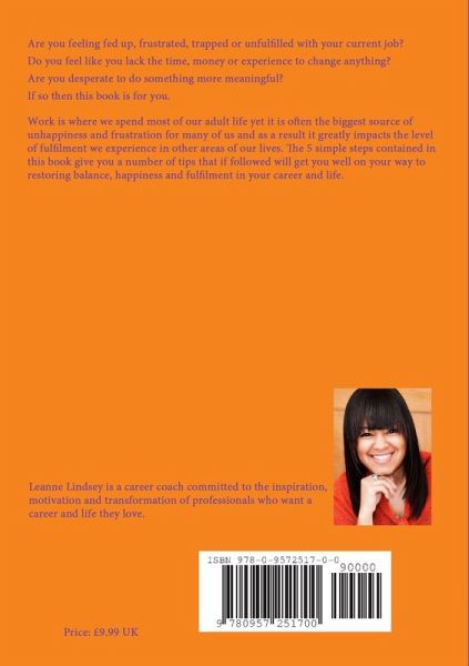 Work is where we spend most of our adult life yet it is often the biggest source of unhappiness and frustration for many of us and as a result it greatly impacts the level of fulfilment we experience in other areas of our lives. Whether you are considering a career change following redundancy, a company restructure or even a significant birthday or you're simply feeling frustrated in your current job, the 5 simple steps contained in this book give you a number of tips that if followed will get you well on your way to restoring balance, happiness and fulfilment in your career and life.