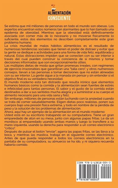 Si quiere reducir el estrés, perder peso y mejorar su relación con la comida, entonces continúe leyendo... ¿Trata las comidas y los alimentos como un problema en su vida? ¿Piensa constantemente en la comida, incluso cuando no está comiendo? ¿Acaso los pensamientos de cuánto, cuándo, qué comer y cómo "adelgazar" lo sacan de quicio? ¿Ha intentado incontables modas y dietas tradicionales sin éxito? ¿Cree que estas dietas y regímenes de ejercicio agotadores han aumentado su peso y sus problemas de alimentación en lugar de ayudarle? Si la respuesta a una de las preguntas anteriores es un "sí", está de suerte. Este libro sobre el antiguo concepto de la alimentación consciente le ayuda a conquistar su comida, peso y problemas de alimentación en sus términos. Siguiendo las sugerencias y recomendaciones dadas en esta guía, aprenderá a amarse a sí mismo exactamente como es. Y también aprenderá:Lo que es la alimentación consciente, cómo funciona, y su historia Los beneficios de esta técnica y lo que promete El papel que juega la alimentación consciente en el tratamiento de los trastornos alimenticios, incluyendo los atracones y el exceso de comida Lo que los Maestros Zen tienen que enseñar sobre el exceso de comida, los atracones y la comida emocional Varios consejos, trucos y sugerencias para comenzar el maravilloso viaje de la alimentación consciente Un enfoque paso a paso para ayudar a construir hábitos alimenticios conscientes 17 inspiradoras historias de éxito de celebridades Ahora es el momento de superar sus hábitos alimenticios de sobrealimentación, atracones, e ingesta emocional. ¡Obtenga este libro ahora para aprender más sobre la alimentación consciente!