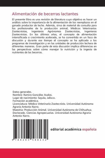 El presente libro es una revisión de literatura cuyo objetivo es hacer un análisis sobre la importancia de la alimentación de los reemplazos en el ganado productor de leche. Además, sirva de material de consulta para los profesionales de la producción animal, Médicos Veterinarios Zootecnistas, Ingenieros Agrónomos Zootecnistas, Ingenieros Zootecnistas. En los últimos años, el concepto de alimentación intensificada o crecimiento acelerado, se ha convertido en un foco de discusión y durante ese tiempo el concepto se ha aplicado a los programas de investigación y en las unidades de producción lechera de diferentes maneras. Gran parte de esta discusión implica diferencias en las perspectivas sobre cómo manejar la nutrición y la ingesta de nutrientes de las becerras.