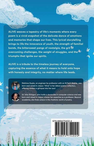 ALIVE weaves a tapestry of life's moments where every poem is a vivid snapshot of the delicate dance of emotions and memories that shape our lives. This lyrical storytelling brings to life the innocence of youth, the strength of familial bonds, the bittersweet pangs of nostalgia, the grit of overcoming challenges, the weight of struggles and the triumphs that ignites our spirits. ALIVE is a tribute to the timeless journey of everyone, capturing the essence of what it means to hold onto hope with honesty and integrity, no matter where life leads.