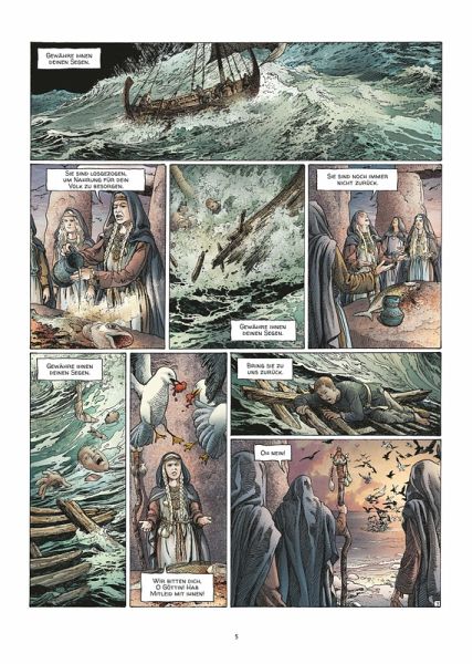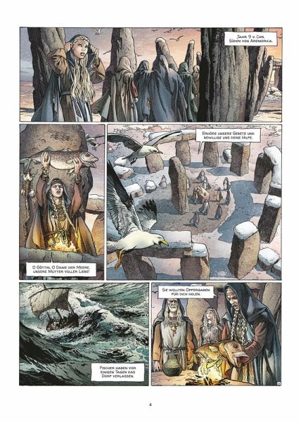 Entschlossen, das geheimnisvolle Atlantis im hohen Norden zu erreichen, reisen Alix und seine Gefährten in ein Dorf in Armorica. Dort wollen sie ein Schiff bauen lassen, das den extremen Bedingungen standhalten kann, die ihnen auf ihrer Reise bevorstehen. Im Dorf schwelt jedoch ein Konflikt, der durch die Ankunft der Fremden verschärft wird: Eine religiöse Gruppierung will jede Art von Fernreise verbieten und sinnt darauf, alle Befürworter der Erkundung der Außenwelt zu beseitigen... und Alix gleich mit.
