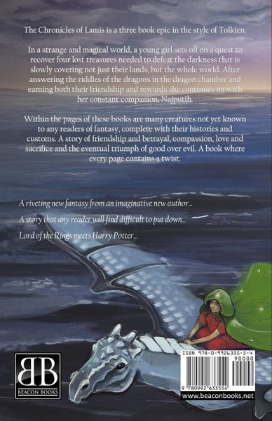 The Chronicles of Lamis is a three book epic a novel in the style of Tolkien. In a strange and magical world, a young girl sets off on a quest to recover four lost treasures needed to defeat the darkness that is slowly covering not just their lands, but the whole world. After answering the riddles of the dragons in the dragon chamber and earning both their friendship and rewards she continues on with her constant companion, Najputih. Through one hardship after another, she finds and recovers each of the four lost treasures and, in the process, learns many secrets and is both burdened and entrusted with powerful hidden gifts. A story of friendship and betrayal, compassion, love and sacrifice and the eventual triumph of good over evil. A book where every page contains a twist to the story the reader will find great difficulty in putting this book down.