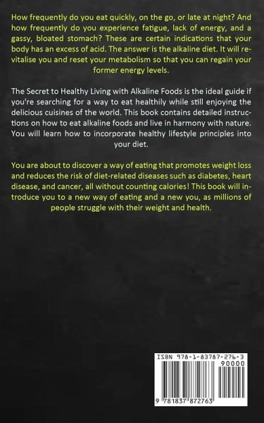 How frequently do you eat quickly, on the go, or late at night? And how frequently do you experience fatigue, lack of energy, and a gassy, bloated stomach? These are certain indications that your body has an excess of acid. The answer is the alkaline diet. It will revitalise you and reset your metabolism so that you can regain your former energy levels. The Secret to Healthy Living with Alkaline Foods is the ideal guide if you're searching for a way to eat healthily while still enjoying the delicious cuisines of the world. This book contains detailed instructions on how to eat alkaline foods and live in harmony with nature. You will learn how to incorporate healthy lifestyle principles into your diet. You are about to discover a way of eating that promotes weight loss and reduces the risk of diet-related diseases such as diabetes, heart disease, and cancer, all without counting calories! This book will introduce you to a new way of eating and a new you, as millions of people struggle with their weight and health.
