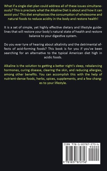 What if a single diet plan could address all of these issues simultaneously? This is precisely what the Alkaline Diet is about and how it can assist you! This diet emphasises the consumption of wholesome and natural foods to reduce acidity in the body and restore health! It is a set of simple, yet highly effective dietary and lifestyle guidelines that will restore your body's natural state of health and restore balance to your digestive system. Do you ever tyre of hearing about alkalinity and the detrimental effects of acid-forming foods? This book is for you if you've been searching for an alternative to the typical American diet high in acidic foods. Alkaline is the solution to getting a better night's sleep, rebalancing hormones, curing disease, clearing the skin, and reducing allergies, among other benefits. You can accomplish this with the help of nutrient-dense foods, herbs, spices, supplements, and a few changes to your lifestyle.