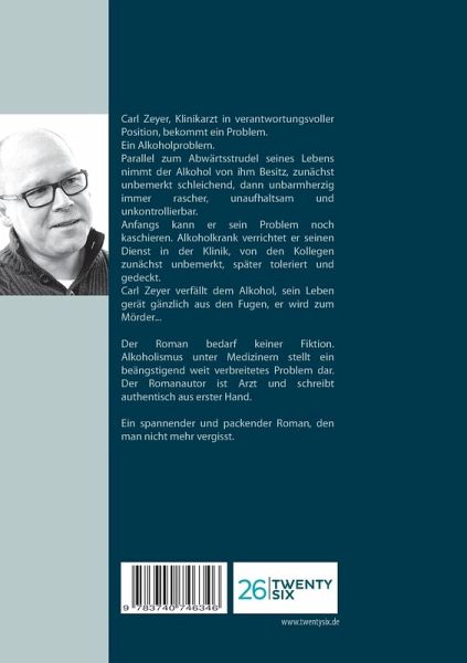Carl Zeyer, Klinikarzt in verantwortungsvoller Position, bekommt ein Problem.Ein Alkoholproblem.Parallel zum Abwärtsstrudel seines Lebens nimmt der Alkohol von ihm Besitz, zunächst unbemerkt schleichend, dann unbarmherzig immer rascher, unaufhaltsam und unkontrollierbar.Anfangs kann er sein Problem noch kaschieren. Alkoholkrank verrichtet er seinen Dienst in der Klinik, von den Kollegen zunächst unbemerkt, später toleriert und gedeckt.Carl Zeyer verfällt dem Alkohol, sein Leben gerät gänzlich aus den Fugen, er wird zum Mörder...Der Roman bedarf keiner Fiktion. Alkoholismus unter Medizinern stellt ein beängstigend weit verbreitetes Problem dar. Der Romanautor ist Arzt und schreibt authentisch aus erster Hand.Ein spannender und packender Roman, den man nicht mehr vergisst.
