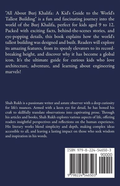 "All About Burj Khalifa: A Kid's Guide to the World's Tallest Building" is a fun and fascinating journey into the world of the Burj Khalifa, perfect for kids aged 9 to 12. Packed with exciting facts, behind-the-scenes stories, and eye-popping details, this book explains how the world's tallest building was designed and built. Readers will explore its amazing features, from its speedy elevators to its record-breaking height, and discover why it has become a global icon. It's the ultimate guide for curious kids who love architecture, adventure, and learning about engineering marvels!