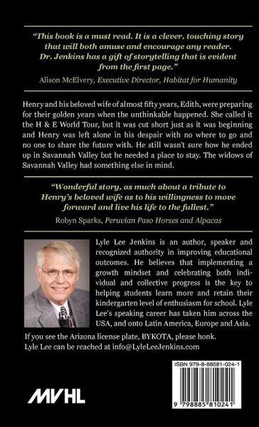 Henry and his beloved wife of almost fifty years, Edith, were preparing for their golden years when the unthinkable happened. She called it the H & E World Tour, but it was cut short just as it was beginning and Henry was left alone in his despair with no where to go and no one to share the future with. He still wasn't sure how he ended up in Savannah Valley. The brochures were beautiful and assured him he could design the house he and Edith always wanted. He needed a place to stay still for awhile but the widows of Savannah Valley had something else in mind.