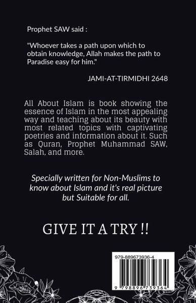 "ALL ABOUT ISLAM" is an informative guide designed to provide a concise yet comprehensive introduction to Islam. Authored by Arham Khaliq Khan and Mirza Areeb Beg, the book explores core aspects of the faith, including Allah's attributes, the Quran, the life of Prophet Muhammad (ﷺ), and Islamic principles like the Five Pillars. It emphasizes Islam's universal message of peace, unity, and morality, addressing misconceptions while inviting both Muslims and non-Muslims to understand the religion better. The authors also discuss the significance of previous prophets, the afterlife, and the Day of Judgment.