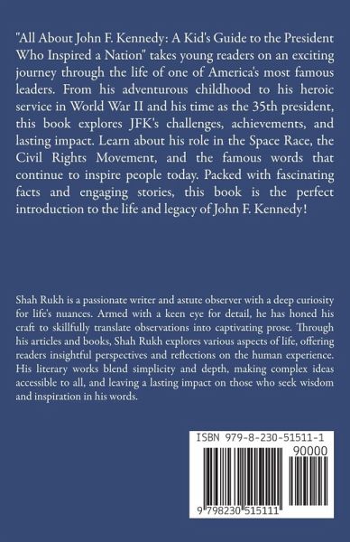 "All About John F. Kennedy: A Kid's Guide to the President Who Inspired a Nation" takes young readers on an exciting journey through the life of one of America's most famous leaders. From his adventurous childhood to his heroic service in World War II and his time as the 35th president, this book explores JFK's challenges, achievements, and lasting impact. Learn about his role in the Space Race, the Civil Rights Movement, and the famous words that continue to inspire people today. Packed with fascinating facts and engaging stories, this book is the perfect introduction to the life and legacy of John F. Kennedy!