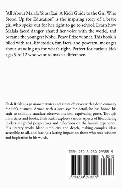 "All About Malala Yousafzai: A Kid's Guide to the Girl Who Stood Up for Education" is the inspiring story of a brave girl who spoke out for her right to go to school. Learn how Malala faced danger, shared her voice with the world, and became the youngest Nobel Peace Prize winner. This book is filled with real-life stories, fun facts, and powerful messages about standing up for what's right. Perfect for curious kids ages 9 to 12 who want to make a difference.