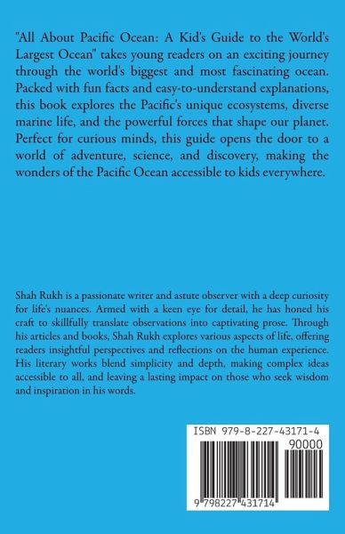"All About Pacific Ocean: A Kid's Guide to the World's Largest Ocean" takes young readers on an exciting journey through the world's biggest and most fascinating ocean. Packed with fun facts and easy-to-understand explanations, this book explores the Pacific's unique ecosystems, diverse marine life, and the powerful forces that shape our planet. Perfect for curious minds, this guide opens the door to a world of adventure, science, and discovery, making the wonders of the Pacific Ocean accessible to kids everywhere.