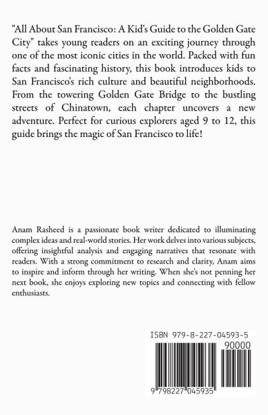 "All About San Francisco: A Kid's Guide to the Golden Gate City" takes young readers on an exciting journey through one of the most iconic cities in the world. Packed with fun facts and fascinating history, this book introduces kids to San Francisco's rich culture and beautiful neighborhoods. From the towering Golden Gate Bridge to the bustling streets of Chinatown, each chapter uncovers a new adventure. Perfect for curious explorers aged 9 to 12, this guide brings the magic of San Francisco to life!