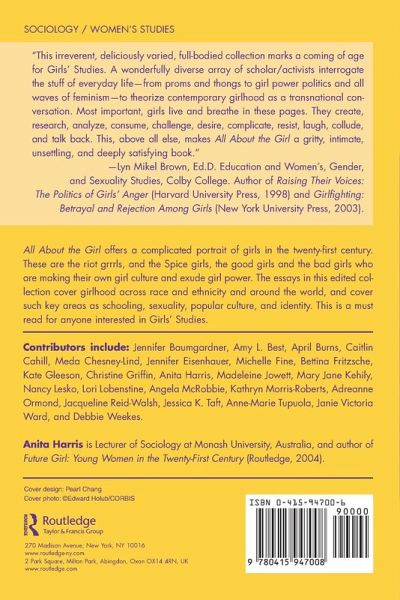 Acknowledgements Foreword: Michelle Fine Introduction: Anita Harris Part 1: Constructing Girlhoods in the Twenty-First Century: Chapter 1: Notes on Post Feminism and Popular Culture: Bridget Jones and the New Gender Regime, Angela McRobbie Chapter 2: Women, Girls, and the Unfinished Work of Connection: A Critical Review of American Girls' Studies, Janie Victoria Ward and Beth Cooper Benjamin Chapter 3: Good Girls, Bad girls: Anglo-centrism and Diversity in the Constitution of Contemporary Girlhood, Christine Griffin Chapter 4: From Badness to Meanness: Popular Constructions of Contemporary Girlhood, Meda Chesney-Lind and Katherine Irwin Part 2: Feminism for Girls Chapter 5: Feminism and Femininity: Or How We Learned to Stop Worrying and Love the Thong, Jennifer Baumgardner and Amy Richards Chapter 6: Girl Power Politics: Pop-Culture Barriers and Organizational Resistance, Jessica Taft Chapter 7: Mythic Figures and Lived Identities: Locating the Girl in Feminist Discourse, Jennifer Eisenhauer Chapter 8: I Don't See Feminists as You See Feminists: Young Women Negotiating Feminism in Contemporary Britain, Madeleine Jowett Part 3: Sexualities Chapter 9: Pretty in Pink: Young Women Presenting Mature Sexual Identities, Kate Gleeson and Hannah Frith Chapter 10: Talking Sexuality Through an Insider's Lens: The Samoan Experience, Anne Marie Tupuola Chapter 11: Shifting Desires: Discourses of Accountability in Abstinence-Only Education in the US, April Burns and Mar #237;a Elena Torre Part 4: Popular and Virtual Cultures Chapter 12: Where My Girls At? Black Girls and the Construction of the Sexual, Debbie Weekes Chapter 13: Spicy Strategies: Pop Feminist and Other Empowerments in Girl Culture, Bettina Fritzsche Chapter 14: Jamming Girl Culture: Young Women and Consumer Citizenship, Anita Harris Chapter 15: Girls' Web Sites: A Virtual Room of One's Own? Jacqueline Reid-Walsh and Claudia Mitchell Part 5: Schooling Chapter 16: Pleasures Within Reason: Teaching Feminism and Education, Nancy Lesko and Antoinette Quarshie Chapter 17: Girls, Schooling and the Discourse of Self-Change: Negotiating Meanings of the High School Prom, Amy L. Best Chapter 18: Gender and Sexuality: Continuities and Change for Girls in School, Mary Jane Kehily Part 6: Research With and By Young Women Chapter 19: Colluding in Compulsory Heterosexuality? Doing Research With Young Women at School, Kathryn Morris-Roberts Chapter 20: Speaking Back: Voices of Young Urban Woman of Color Using Participatory Action Research to Challenge and Complicate Representations of Young Women, Caitlin Cahill and the Fed Up Honeys: Erica Arenas, Jennifer Contreras, Jiang Na, Indra Rios-Moore, and Tiffany Threatts Chapter 21: Beneath the Surface of Voice and Silence: Researching the Home Front, Adreanne Ormond Chapter 22: Possible Selves and Pasteles: How a Group of Mothers and Daughters Took a London Conference by Storm, Lori Lobenstine, Yasmin Pereira, Jenny Whitley, Jessica Robles, Yaraliz Soto, Jeanette Sergeant, Daisy Jimenez, Emily Jimenez, Jessenia Ortiz, and Sasha Cirino Contributor Biographies Index