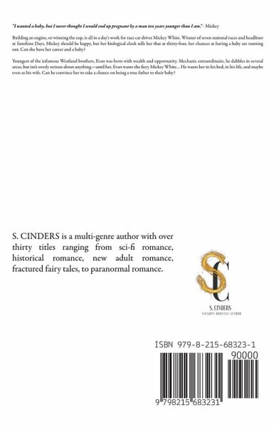 "I wanted a baby, but I never thought I would end up pregnant by a man ten years younger than I am." - Mickey Building an engine, or winning the cup, is all in a day's work for race car driver Mickey White. Winner of seven national races and headliner at Sunshine Days, Mickey should be happy, but her biological clock tells her that at thirty-four, her chances at having a baby are running out. Can she have her career and a baby? Youngest of the infamous Westland brothers, Evan was born with wealth and opportunity. Mechanic extraordinaire, he dabbles in several areas, but isn't overly serious about anything—until her. Evan wants the fiery Mickey White… He wants her in his bed, in his life, and maybe even as his wife. Can he convince her to take a chance on being a true father to their baby?