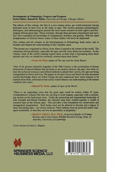 "The human race originated in Africa, from where it spread to all corners of the world. The remaining African primates, especially the apes, provide clues about our evolution. In this volume, some of the world's leading experts show us both what is fascinating about these animals and why we should be extremely worried about their future." (Frans de Waal, author of The Ape and the Sushi Master) "One of the greatest shameful tragedies of the 20th Century is acceleration of human destruction of natural habitats that are home to our nearest relatives, the apes. Just when we have the technical resources and refined methods to plumb their secrets, the apes are being extinguished in Africa and Asia. The papers in All Apes Great and Small not only document current knowledge about our fellow beings but also underscore how much remains to be learned about them, information that surely would enhance our understanding of the human condition and career." (Russell H. Tuttle, author of Apes of the World) "There is an impending crisis that the great apes could be extinct within 25 years. Comprehensive volumes like this one can help to avert tragedy, especially with a concluding section on the bush-meat crisis. Under the pioneering and inspirational leadership of Jane Goodall and Birute Galdikas, the editorial team have welded together a wealth of research data on the African apes. This provides a firm foundation for conservation and management programmes. Such books must not be allowed to  become just a legacy to these fascinating apes - our closest relatives. Their habitats must be protected and/or managed sustainably, so that they can live on peacefully in perpetuity." (David J. Chivers, M.A., Ph.D. University Reader in Primate Biology and Conservation Wildlife Research Group, Dept. of Anatomy, University of Cambridge) "Although is a somewhat eclectic collection of papers rather than a cohesive, thematically integrated volume, this book contains much recent research on African great apes and will undoubtedly become a valued reference for primatologists worldwide." (L. Swedell, CUNY Queens College, in Choice (January 2003) "All Apes Great and Small is well-structured, informative and inspirational, giving realistic hope that retaining populations in African apes in the wild is possible. Each paper is not only well written but also a significant part of the book as a whole. The chapters discussing hominid divergence from their ape cousins often lead to fascinating yet controversial conclusions. This volume closes with a discussion of the moral status of apes. Cavalien and Singer elaborate on their argument that apes should be accorded rights that include liberty, life and freedom from torture. Although this idea is controversial among some primatologists, Cavalien and Singer very convincingly present their case for The Great Ape Project. [All Apes Great and Small is] a recommended read for any primatologist with an interest in this subject." (Primate Eye, Primate Society of Great Britain, 81 (October 2003)