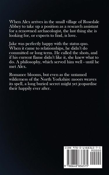 When Alex arrives in the small village of Rosedale Abbey, to take up a position as a research assistant for a renowned archaeologist, the last thing she is looking for, or expects to find, is love. Jake was perfectly happy with the status quo. When it came to relationships, he didn't do committed or long term. He called the shots, and if his current flame didn't like it, she knew what to do. A philosophy, which served him well - until he met Alex.Romance blooms, but even as the untamed wilderness of the North Yorkshire moors weaves its spell, a long buried secret might yet jeopardise their happily ever after.