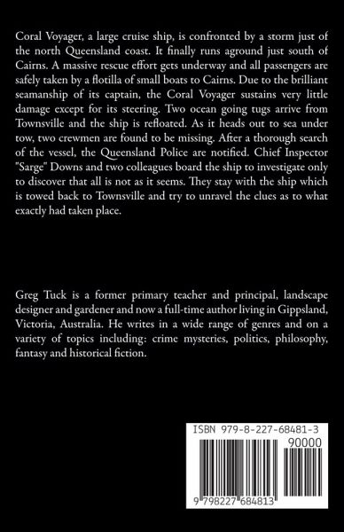 Coral Voyager, a large cruise ship, is confronted by a storm just of the north Queensland coast. It finally runs aground just south of Cairns. A massive rescue effort gets underway and all passengers are safely taken by a flotilla of small boats to Cairns. Due to the brilliant seamanship of its captain, the Coral Voyager sustains very little damage except for its steering. Two ocean going tugs arrive from Townsville and the ship is refloated. As it heads out to sea under tow, two crewmen are found to be missing. After a thorough search of the vessel, the Queensland Police are notified. Chief Inspector "Sarge" Downs and two colleagues board the ship to investigate only to discover that all is not as it seems. They stay with the ship which is towed back to Townsville and try to unravel the clues as to what exactly had taken place.
