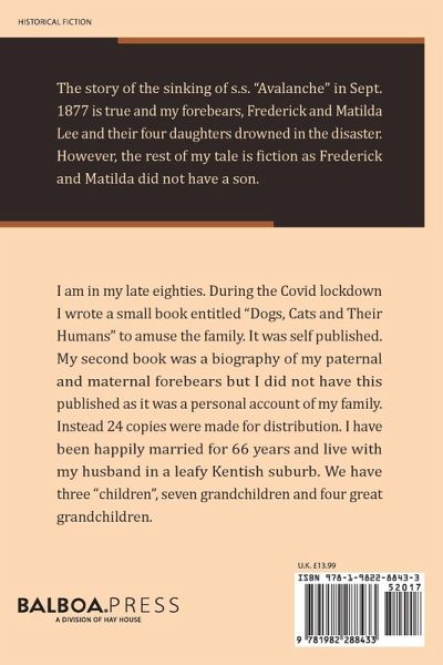 The story of the sinking of s.s. "Avalanche" in Sept. 1877 is true and my forebears, Frederick and Matilda Lee and their four daughters drowned in the disaster. However, the rest of my tale is fiction as Frederick and Matilda did not have a son.