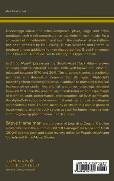 Chapter 1: "I Think I'm Pretty Good": Paul McCartney and the Art of AlphaSoloism by Steve Hamelman Chapter 2: A Perspective on the Single-Artist Album and John Fogerty's Blue Ridge Rangers (1973) by Thomas Kitts Chapter 3: Songs in the Key of Strife: Stevie Wonder's Solitary Songs of Social Significance on Innervisions (1973) by Ian Peddie Chapter 4: His Life with You He Shares: Prince's For You (1979) by Sarah Niblock Chapter 5: Breaking Free of Queen: Roger Taylor's Fun in Space (1981) by Nick Braae Chapter 6: Martin Newell's The Greatest Living Englishman (1993) by James Martens Chapter 7: Resignation with Flair: Elliott Smith's Roman Candle (1994) by Kristin Lieb Chapter 8: Thrown into a Cruel World: Neil Young's Dead Man (1995) by Ulrich Adelt Chapter 9: Narrative Themes about Post-Band Solo Work in Media Coverage of Ben Folds's Rockin' the Suburbs (2001) by Jordan M. McClain and Amanda S. McClain Chapter 10: "What's for Tea, Daughter?": Technology and Selling Out in Petra Haden Sings: The Who Sell Out (2005) by Colin Helb Chapter 11: So Young, So Country, So Self-Contained: Hunter Hayes (2011) by Lawrence Pitilli