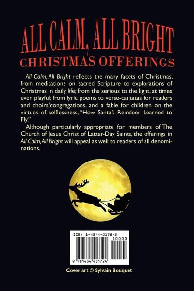 "All Calm, All Bright" reflects the many facets of Christmas, from meditations on sacred Scripture to explorations of Christmas in daily life; from the serious to the light, at times even playful; from lyric poems to verse-cantatas for readers and choirs/congregations, and a fable for children on the virtues of selflessness, "How Santa's Reindeer Learned to Fly." Although particularly appropriate for members of The Church of Jesus Christ of Latter-Day Saints, the offerings in "All Calm, All Bright" will appeal as well to readers of all denominations.