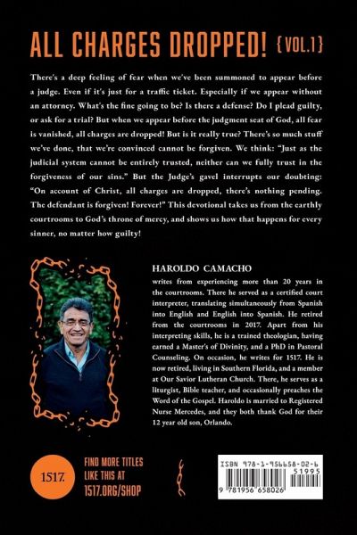 Donavon Riley is a Lutheran pastor, conference speaker, author, and co-host of The Banned Books and Warrior Priest podcasts. He authored the book, Crucifying Religion about his conversion from atheist to believer. He is also a Muay Thai and BJJ practitioner and operates the Warrior Priest Gym MMA. Haroldo Camacho writes from experiencing more than 20 years in the courtrooms. There he served as a certified court interpreter, translating simultaneously from Spanish into English and English into Spanish. He retired from the courtrooms in 2017. Apart from his interpreting skills, he is a trained theologian, having earned a Master's of Divinity, and a PhD in Pastoral Counseling. On occasion, he writes for 1517. He is now retired, living in Southern Florida, and a member at Our Savior Luther Church. There, he serves as a liturgist, Bible teacher, and occasionally preaches the Word of the Gospel. Haroldo is married to Registered Nurse Mercedes, and they both thank God for their 12 year old son, Orlando.