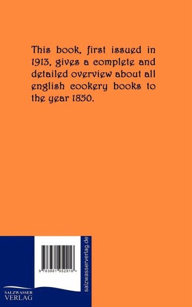 This book, first issued in 1913, gives a complete and detailed overview about all english cookery books to the year 1850.