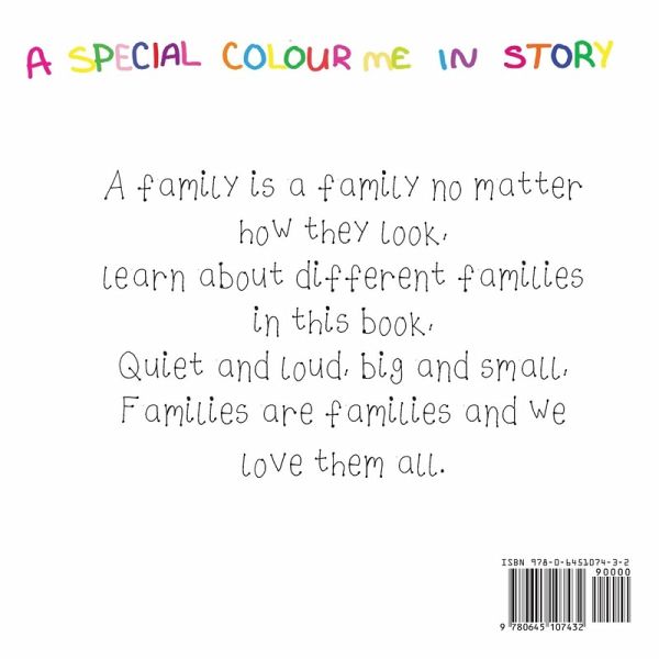 Every family is different and this book is all about the different family dynamics around the world. Each family is special no matter how they look or how many people are a part of it. Families aren't always those who are born into the name but they can also be people who you choose to love.
