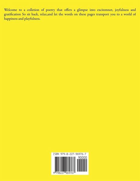 Welcome to a colletion of poetry that offers a glimpse into excitemnet, joyfulness and gratification So sit back, relax,and let the words on these pages transport you to a world of happiness and playfulness.