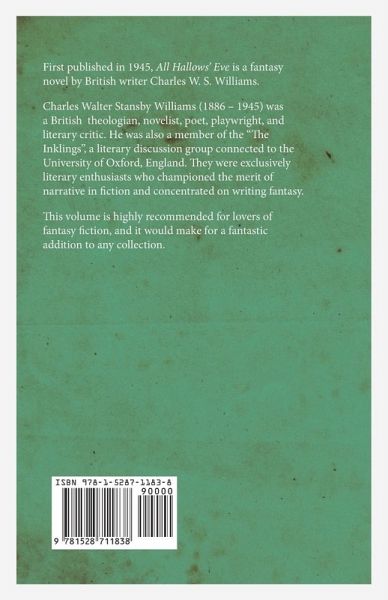 First published in 1945, "All Hallows' Eve" is a fantasy novel by British writer Charles W. S. Williams. Charles Walter Stansby Williams (1886 - 1945) was a British theologian, novelist, poet, playwright, and literary critic. He was also a member of the "The Inklings", a literary discussion group connected to the University of Oxford, England. They were exclusively literary enthusiasts who championed the merit of narrative in fiction and concentrated on writing fantasy. He was given an scholarship to University College London, but was forced to leave in 1904 because he couldn't afford the…mehr