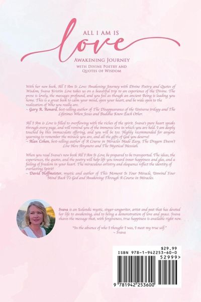 All I Am Is Love: Awakening Journey with Divine Poetry and Quotes of Wisdom by Svava Kristín Love is a book that takes you on a journey of transformation and self-discovery. Within its pages, you will find a collection of poems and quotes that were divine answers during a very challenging period of the author's life. The book is filled with beautiful and inspiring words that bring light to the reader's soul. Svava Kristín Love shares how these words of wisdom guided her back to a state of grace, love, and peace. The book teaches us that there is a way out of pain and sorrow, and that we can always turn to God for help. All I Am Is Love is a book for those who seek inspiration and guidance on their spiritual journey. Through the author's poems, art and words of wisdom, readers will find comfort and hope. All I Am Is Love is a beautiful testament of the power of forgiveness, divine guidance, and Love in our lives.