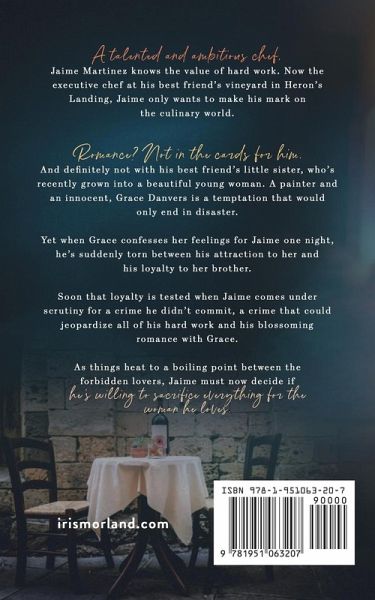 A talented and ambitious chef, Jaime Martinez knows the value of hard work. Now the executive chef at his best friend's vineyard in Heron's Landing, Jaime only wants to make his mark on the culinary world.Romance? Not in the cards for him. And definitely not with his best friend's little sister, who's recently grown into a beautiful young woman. A painter and an innocent, Grace Danvers is a temptation that would only end in disaster.Yet when Grace confesses her feelings for Jaime one night, he's suddenly torn between his attraction to her and his loyalty to her brother.Soon that loyalty is tested when Jaime comes under scrutiny for a crime he didn't commit, a crime that could jeopardize all of his hard work and his blossoming romance with Grace.As things heat to a boiling point between the forbidden lovers, Jaime must now decide if he's willing to sacrifice everything for the woman he loves.This title was previously published as Tempt Me Tenderly. It's been rereleased with a brand-new look and with lightly edited content.