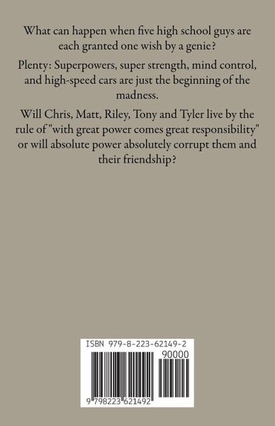 What can happen when five high school guys are each granted one wish by a genie? Plenty: Superpowers, super strength, mind control, and high-speed cars are just the beginning of the madness. Will Chris, Matt, Riley, Tony and Tyler live by the rule of "with great power comes great responsibility" or will absolute power absolutely corrupt them and their friendship?