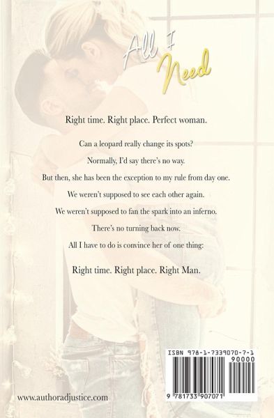 Right time. Right place. Perfect woman. Can a leopard really change its spots? Normally, I'd say there's no way. But then, she has been the exception to my rule from day one. We weren't supposed to see each other again. We weren't supposed to fan the spark into an inferno. There's no turning back now. All I have to do is convince her of one thing: Right time. Right place. Right Man.