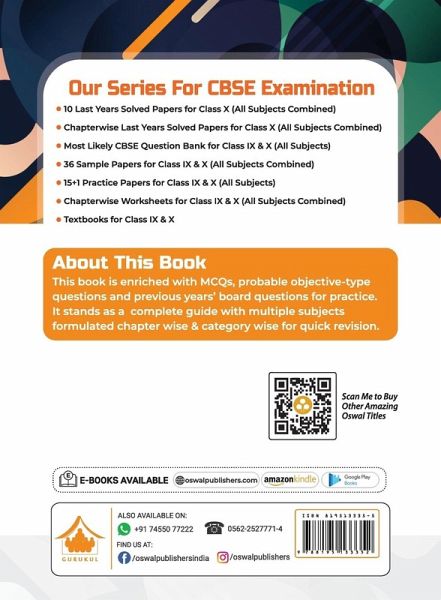 Benefit from Effective Practice & Easy Revision for Class 10 CBSE Board Examinations (2022) with our All in 1 Guide Book Consisting of 6 subjects including, English Language & Literature, Hindi A, Hindi B, Mathematics, Science, and Social Science. Our handbook will help you study well and prepare at home with all the answers stictly based on marking scheme issued by Board. Why should you trust Gurukul Books - Oswal Publishers? Oswal Publishers has been in operation since 1985. Over the past 30