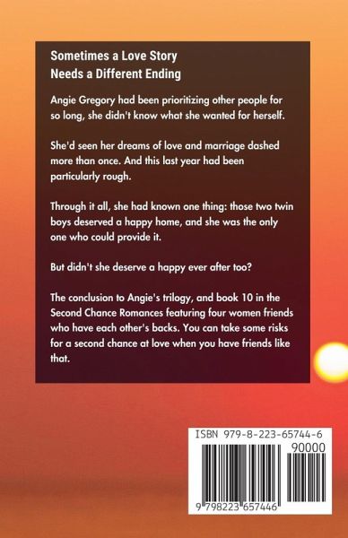 Sometimes a Love Story Needs a Different Ending Angie Gregory had been prioritizing other people for so long, she didn't know what she wanted for herself. She'd seen her dreams of love and marriage dashed more than once. And this last year had been particularly rough. Through it all, she had known one thing: those two twin boys deserved a happy home, and she was the only one who could provide it. But didn't she deserve a happy ever after too? The conclusion to Angie's trilogy, and book 12 in the Small Town Secrets series, featuring four women friends who have each other's backs. You can take some risks for a second chance at love when you have friends like that.