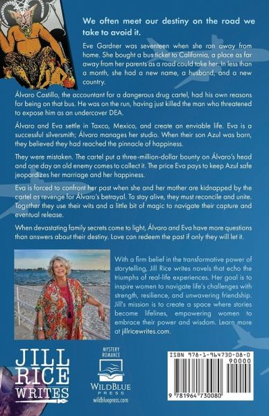 We often meet our destiny on the road we take to avoid it. Eve Gardner was seventeen when she ran away from home. She bought a bus ticket to California, a place as far away from her parents as a road could take her. In less than a month, she had a new name, a husband, and a new country. Álvaro Castillo, the accountant for a dangerous drug cartel, had his own reasons for being on that bus. He was on the run, having just killed the man who threatened to expose him as an undercover DEA. Álvaro and Eva settle in Taxco, Mexico, and create an enviable life. Eva is a successful silversmith; Álvaro manages her studio. When their son Azul was born, they believed they had reached the pinnacle of happiness. They were mistaken. The cartel put a three-million-dollar bounty on Álvaro's head and one day an old enemy comes to collect it. The price Eva pays to keep Azul safe jeopardizes her marriage and her happiness. Eva is forced to confront her past when she and her mother are kidnapped by the cartel as revenge for Álvaro's betrayal. To stay alive, they must reconcile and unite. Together they use their wits and a little bit of magic to navigate their capture and eventual release. When devastating family secrets come to light, Álvaro and Eva have more questions than answers about their destiny. Love can redeem the past if only they will let it.