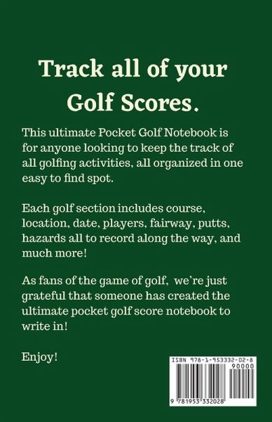 How To Use This ALL MY GOLF SCORE SHIT Pocket Golf Score Log Book: This ultimate pocket golf score notebook is a perfect way to track and record all your favorite golf games. This unique golf score notebook is a great way to keep your golfing information all in one place. Each interior page includes prompts and space to record the following: Course - Write the name of the golf course. Location - Write out where you played. Date - What day you played. Weather - Record what the weather was that day.. Players - Stay on task by naming all the players in your group.....come back here later to have a good laugh... Par - Record the number of strokes per hole. Stroke - Keep track of how many times to hit the ball. Fairway - Track any hazards along the way. Putts - Write in how many strokes were made. Hazards - Track any trees, obstacles, bunkers along the way. Score - Keep score for every round of golf. If you are new to the game of golf, or have been at this for a while...this golf pocket planner is a must have! Can make an awesome gift for the golf lover, and will be a keepsake forever. Enjoy!