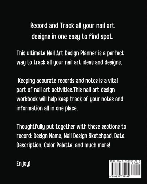 How to use this ALL MY NAIL ART DESIGN SHIT Nail Art Design Planner: 8 X 10 Inches 110 Pages This useful nail art design planner is a must-have for anyone that loves to paint nails! You will love this easy to use journal to track and record all your nail design activities. Each interior page includes space to record & track the following: Design Name - Write down the name of the nail design. Nail Design Sketchpad - Use this space to sketch out new nail art designs. Description - Stay on task using the space to write out the description of each design. Color Palette - Record and Track the color choices of each design. Details and Patterns - Use this space to list out details of each design. Additional Notes - Space to write out any thoughts, ideas of your nail artwork. If you are new to the world of nail art design or have been at it for a while, this nail artwork planner is a must have! Can make a great useful gift for anyone that loves to plan out nail art designs! Have Fun!