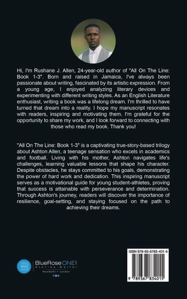 "All On The Line: Book 1-3" is a captivating true-story-based trilogy about Ashton Allen, a teenage sensation who excels in academics and football. Living with his mother, Ashton navigates life's challenges, learning valuable lessons that shape his character. Despite obstacles, he stays committed to his goals, demonstrating the power of hard work and dedication. This inspiring manuscript serves as a motivational guide for young student-athletes, proving that success is attainable with perseverance and determination. Through Ashton's journey, readers will discover the importance of resilience, goal-setting, and staying focused on the path to achieving their dreams.