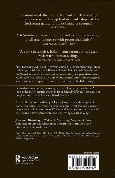 Nazi Germany and Fascist Italy were united in a 'brutal friendship'. Both had savage racial laws: both Hitler and Mussolini viciously denounced the 'Jewish menace'. Yet each nation treated the Jews quite differently. Whilst Jews who fell into the arms of the German army were consigned, almost without exception, to concentration camps, not one Jew taken by the Italians suffered the same fate. Italian officers protected not just Italian Jews, but Jewish refugees of every nationality. Jonathan Steinberg uses this remarkable and poignant story to unravel the motives and forces underpinning both Nazism and Fascism in an attempt to resolve the underlying question: Why?