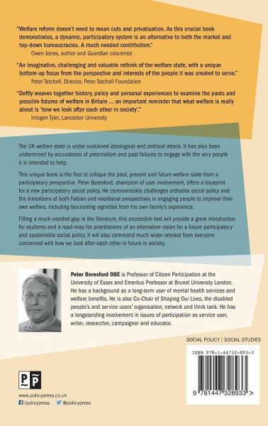 This unique book is the first to critique the past, present and future welfare state from a participatory perspective. Peter Beresford demonstrate the value of â¿¿user knowledge' by challenging orthodox social policy and the limitations of both Fabian and Neo-liberal perspectives drawing on service users â¿¿ own ideas and experience.