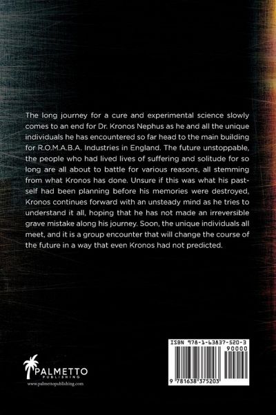 The long journey for a cure and experimental science slowly comes to an end for Dr. Kronos Nephus as he and all the unique individuals he has encountered so far head to the main building for R.O.M.A.B.A. Industries in England. The future unstoppable, the people who had lived lives of suffering and solitude for so long are all about to battle for various reasons, all stemming from what Kronos has done. Unsure if this was what his past-self had been planning before his memories were destroyed, Kronos continues forward with an unsteady mind as he tries to understand it all, hoping that he has not made an irreversible grave mistake along his journey. Soon, the unique individuals all meet, and it is a group encounter that will change the course of the future in a way that even Kronos had not predicted.