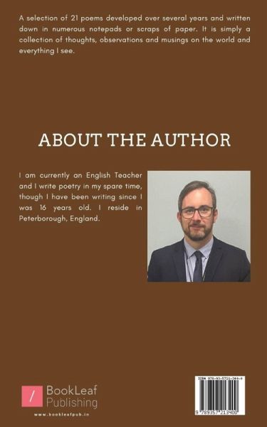 A selection of 21 poems developed over several years and written down in numerous notepads or scraps of paper. It is simply a collection of thoughts, observations and musings on the world and everything I see.