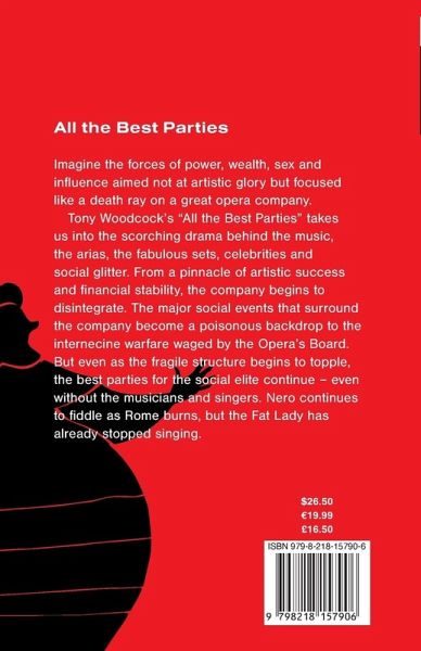 Imagine the forces of power, wealth, sex and influence aimed not at artistic glory but focused like a death ray on a great opera company. Tony Woodcock's "All the Best Parties" takes us into the scorching drama behind the music, the arias, the fabulous sets, celebrities and social glitter. From a pinnacle of artistic success and financial stability, the company begins to disintegrate. The major social events that surround the company become a poisonous backdrop to the internecine warfare waged by the Opera's Board. But even as the fragile structure begins to topple, the best parties for the social elite continue-- even without the musicians and singers. Nero continues to fiddle as Rome burns, but the Fat Lady has already stopped singing.