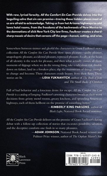 With raw, lyrical ferocity, All the Comfort Sin Can Provide delves into the beguiling salve that sin can promise-tracing those hidden places most of us are afraid to acknowledge. In this collection of brutally unsentimental short stories, Grant Faulkner chronicles dreamers, addicts, and lost souls who have trusted too much in wayward love, the perilous balm of substances, or the unchecked hungers of others, but who are determined to find salvation in their odd definitions of transcendence. Taking us from hot Arizona highways to cold Iowa hotel rooms, from the freedoms of the backwoods of New Mexico to the damnations of slick New York City law firms, Faulkner creates a shard-sharp mosaic of desire that careens off the page-honest, cutting, and wise.
