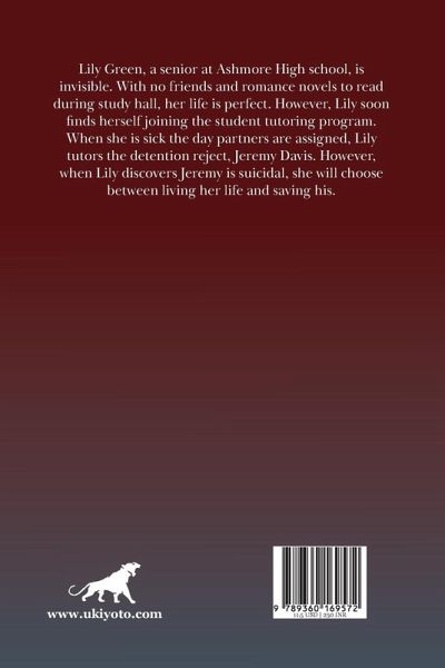 Lily Green, a senior at Ashmore High school, is invisible. With no friends and romance novels to read during study hall, her life is perfect. However, Lily soon finds herself joining the student tutoring program. When she is sick the day partners are assigned, Lily tutors the detention reject, Jeremy Davis. However, when Lily discovers Jeremy is suicidal, she will choose between living her life and saving his.
