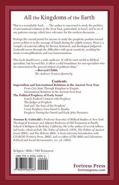 "This is a remarkable book.... The author is concerned to study the problem of international relations in the Near East, particularly in Israel, and to see if any patterns emerge which have relevance for the modern discussion.... Perhaps the crucial period for anyone to study the prophetic position toward power politics is in the message of Isaiah during the 8th century. Here is a complex of material calling for literary, historical, and theological judgment. Gottwald moves through the difficulties with great sensitivity, avoiding the usual oversimplifications and easy harmonizations. This book should serve a wide audience. It will be most useful to Biblical specialists, but beyond this, it offers a solid foundation for non-specialists who are interested in the general subject of political ethics." -- Brevard Childs, The Andover Newton Quarterly