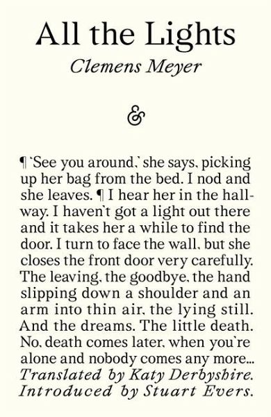Winner of the 2008 Leipzig Book Fair PrizeA man bets all he has on a horse race to pay for an expensive operation for his dog. A young refugee wants to box her way straight off the boat to the top of the sport. Clemens Meyer strikes the tone of our harsh times, and finds the grace notes, the bright lights shining in the dark.