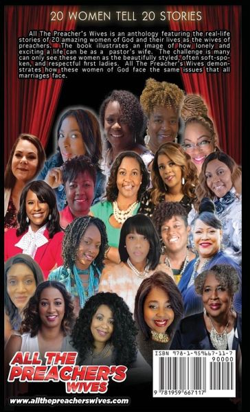 All The Preacher's Wives is an anthology featuring the real-life stories of 20 amazing women of God and their lives as the wives of preachers. The book illustrates an image of how lonely and exciting a life can be as a pastor's wife. The challenge is many can only see these women as the beautifully styled, often soft-spoken, and respectful first ladies. But All The Preacher's Wives demonstrates how these women of God face the same issues that all marriages face. The book is also a personal guide and ministry for women (and men) who consider joining this very unique sisterhood. There has not been a book or major movement like this since Lois Evans (the wife of Tony Evans). But All The Preacher's Wives provides a glimpse into how things are within the marriage, the congregation, family life, and money. Get ready for the presentation of "All The Preacher's Wives." Authors include: Dr. Velma Bagby, Apostle Chosen Boston, Rev. Josie Cooper, TreSonya Madison Durden, MaLena Evans, Gina Fields, Undrea "Shay" Gray, Pastor Jamie Haddock, Pastor Dorothy Henley, Coach Krystal Henry, Author Liza Hines, Pastor Patricia Jackson, Author Melanie M. Johnson, Merl Johnson, Author Linda Kornegay, Pastor Brandie Manigault, Dr. Nina McGhee, Dr. Trivia Payne, Tenelle Torrence, and Petra (Anonymous).
